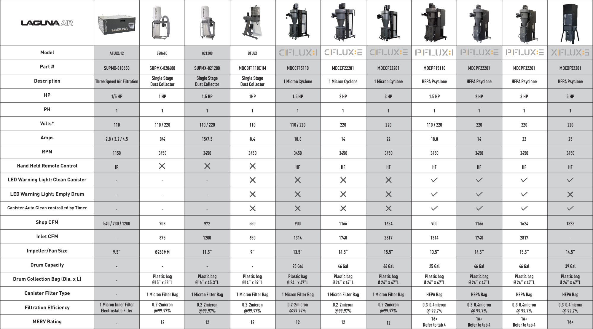 For the popular C|Flux cyclone dust collectors, Laguna kept the user-friendly aspects of the previous generation while adding smart new features to improve the user experience. Among the upgrades is a dual-paddle filter cleaning design, and a max level indicator to increase filter longevity. The iconic octagonal drum grows to an impressive 46-gallon capacity on the C|Flux 2 and 3 models, and the newly redesigned 3-piece drum construction requires far fewer joints and fasteners cutting assembly time, while the added locking casters make shop mobility a breeze.