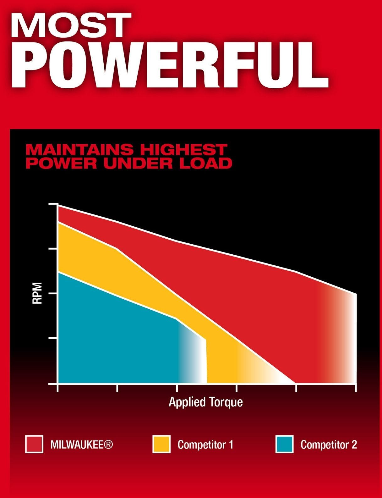 The MILWAUKEE M18 FUEL 1/2 Drill Driver is the Industry's Most Powerful Drill, Most Compact solution in class and features AutoStop Control Mode for Enhanced Safety. Delivering the capability to drill the largest holes at high speed into the densest materials. The POWERSTATE Brushless motor delivers the most power under load to complete 2-9/16" Self-Feed holes in dense woods for increased productivity. At only 6.9 in length, this is the most compact cordless drill driver in its class for the best access and maneuverability in tight spaces. The AutoStop Control Mode offers enhanced safety for the operator by preventing over-rotation in a bind-up with the best reaction time in the industry. The REDLINK PLUS intelligence ensures maximum performance and protects from overloads, heating, and over-discharge. The MILWAUKEE M18 REDLITHIUM battery packs deliver more work per charge and more work over the life of the pack when compared to competitors. The all metal ratcheting chuck is the best-in-class. This provides increased grip strength, durability and corrosion resistance.