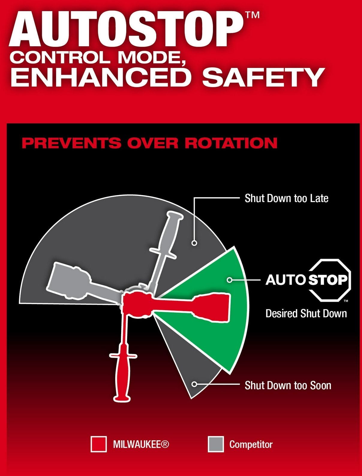 - Auto-Stop Feature to Protect from overroation in a bindup for enhanced safety, equipped with a dedicated autostop light on foot of tool to indicate a protection event