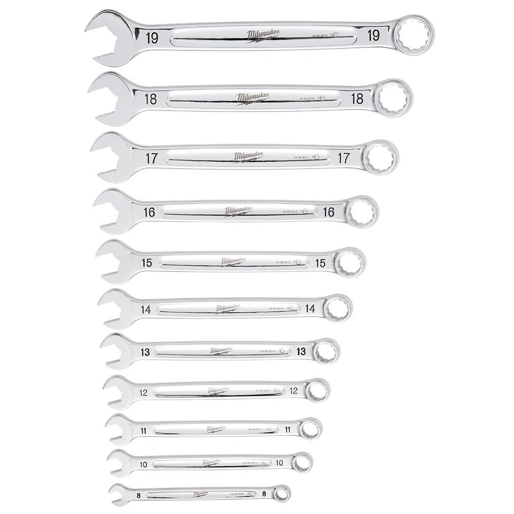 The MILWAUKEE 11 Piece Metric Combination Wrench Set delivers maximum torque and ultimate user comfort. The MILWAUKEE MAX BITE Open-End Grip improves the wrench's grip on nuts and bolts, and the geometry reduces rounding and stripping. Milwaukee MAX BITE offers 25% more torque than competitive wrench designs. The Comfortable I-Beam Handle Design allows superior user comfort, even while applying high torque. Milwaukee wrenches feature ink-filled size labels for easy size identification and the quick distinction between SAE and metric sets. The Milwaukee 11pc kits come in a storage tray designed for long-term storage, keeping your tool chest organized. Standing behind their products, Milwaukee offers a Lifetime Guarantee on all Milwaukee Combination Wrench Sets.