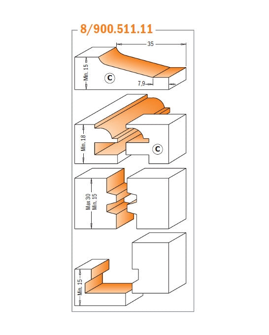 These CMTs sets arent only a random selection of odds and ends packaged in a nice elegant box, but they are also professional kits for drawer and door makers. 3 sets to choose from, 5 different bits to suit your needs: a raised panel bit, rail and stile bits, a glue joint and a drawer lock bit. Please refer to the illustrations below for complete profile options.