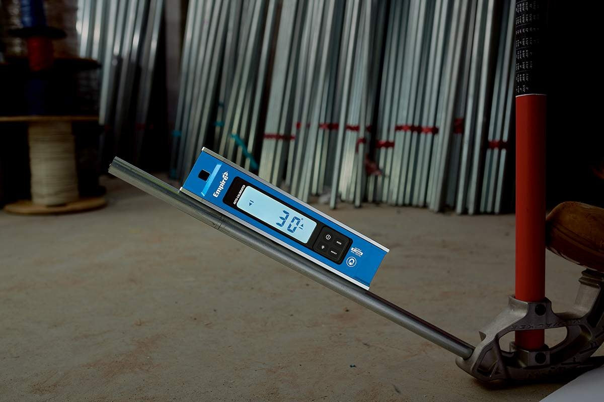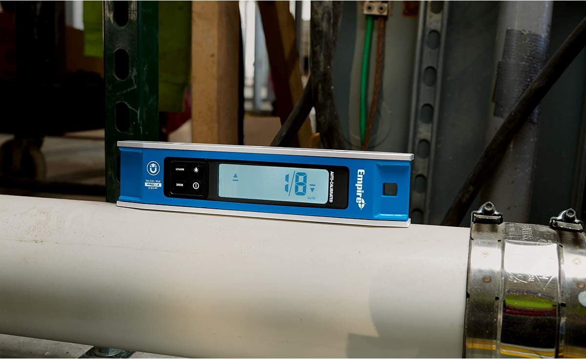 Empire Level expands its digital level offering to include the em105.9 Digital Torpedo Level. Ready to measure accurately when powered on, the new em105.9 auto-calibrated feature will allow users to get a clear and precise digital readout immediately. In addition, with 6 measuring display modes, the new Digital Torpedo provides professionals the compatibility to make precision mode measurements in degree-tenths, mm/M or percentage, or the option to take rough-in mode measurements in degrees, in/ft. fractions or in/ft. decimals. For even further versatility, inspect mode allows uses to zero out the torpedo which is idea for conduit bending applications.