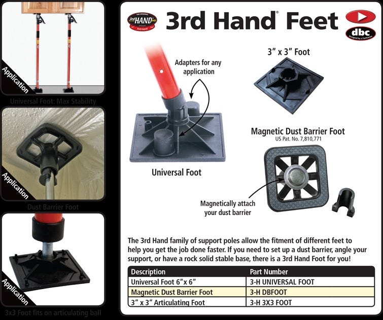 The 3rd Hand Universal FOOT allows the 3rd Hand HD to free stand. It is easily installed by removing the bottom articulating foot and then installing the Universal Foot. Foot size is 6"x6".
