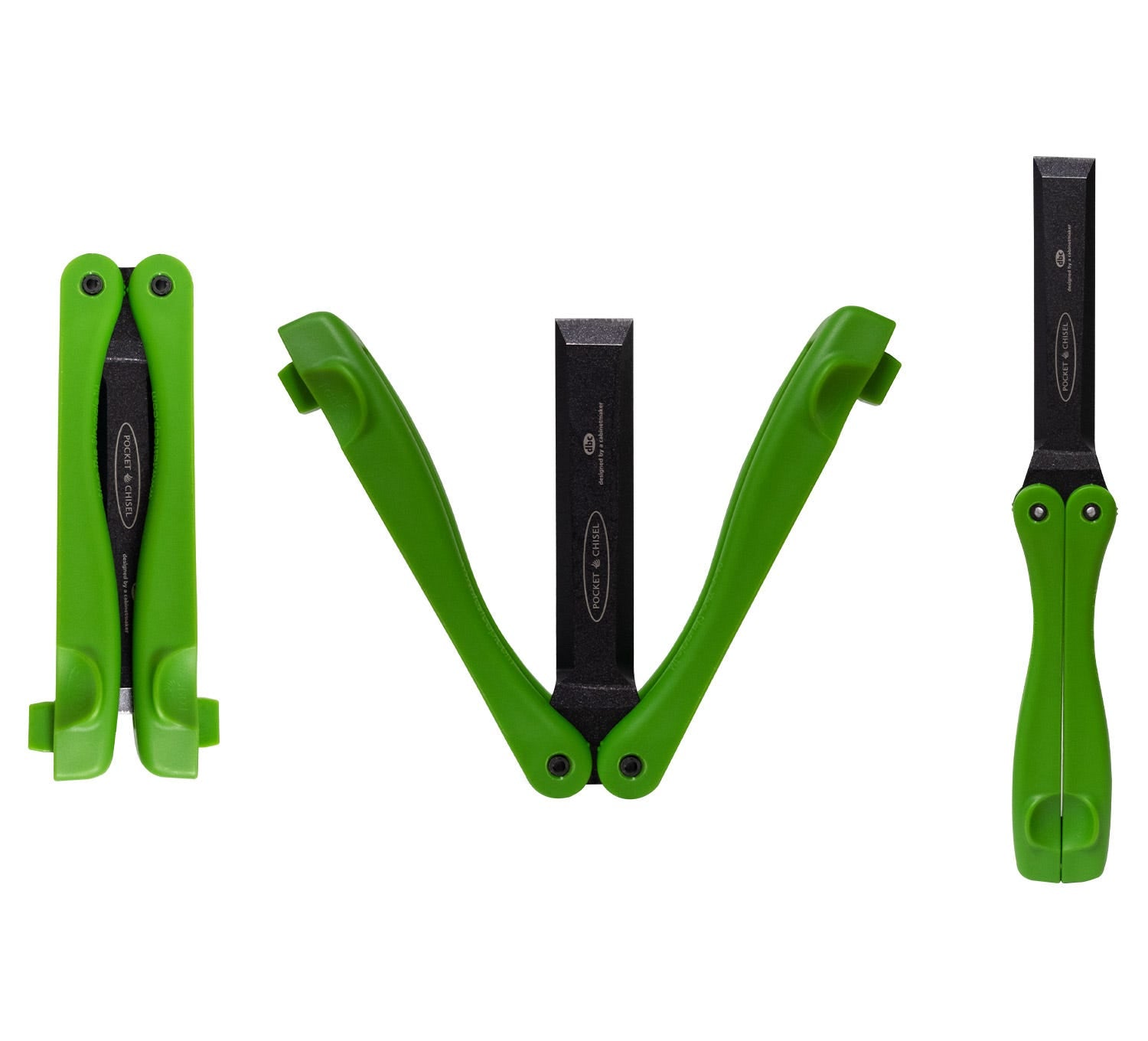 Tired of a dull chisel? Our Pocket Chisels are made of precision tool steel and have a heavy-duty nylon handle that locks when opened and will stay locked so that you can hammer the hell out of it. The Pocket Chisel Kit includes four Pocket Chisels in 1/4", 1/2", 3/4" and 1" blades, one Pocket Diamond Sharpener, one Pocket Putty Knife and one Pocket File/ Rasp.