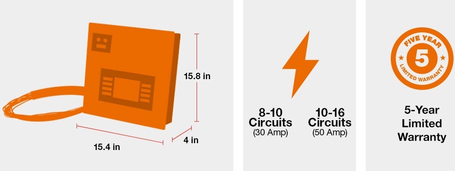 - Upgradeable so it can later be converted to an automatic home standby transfer switch