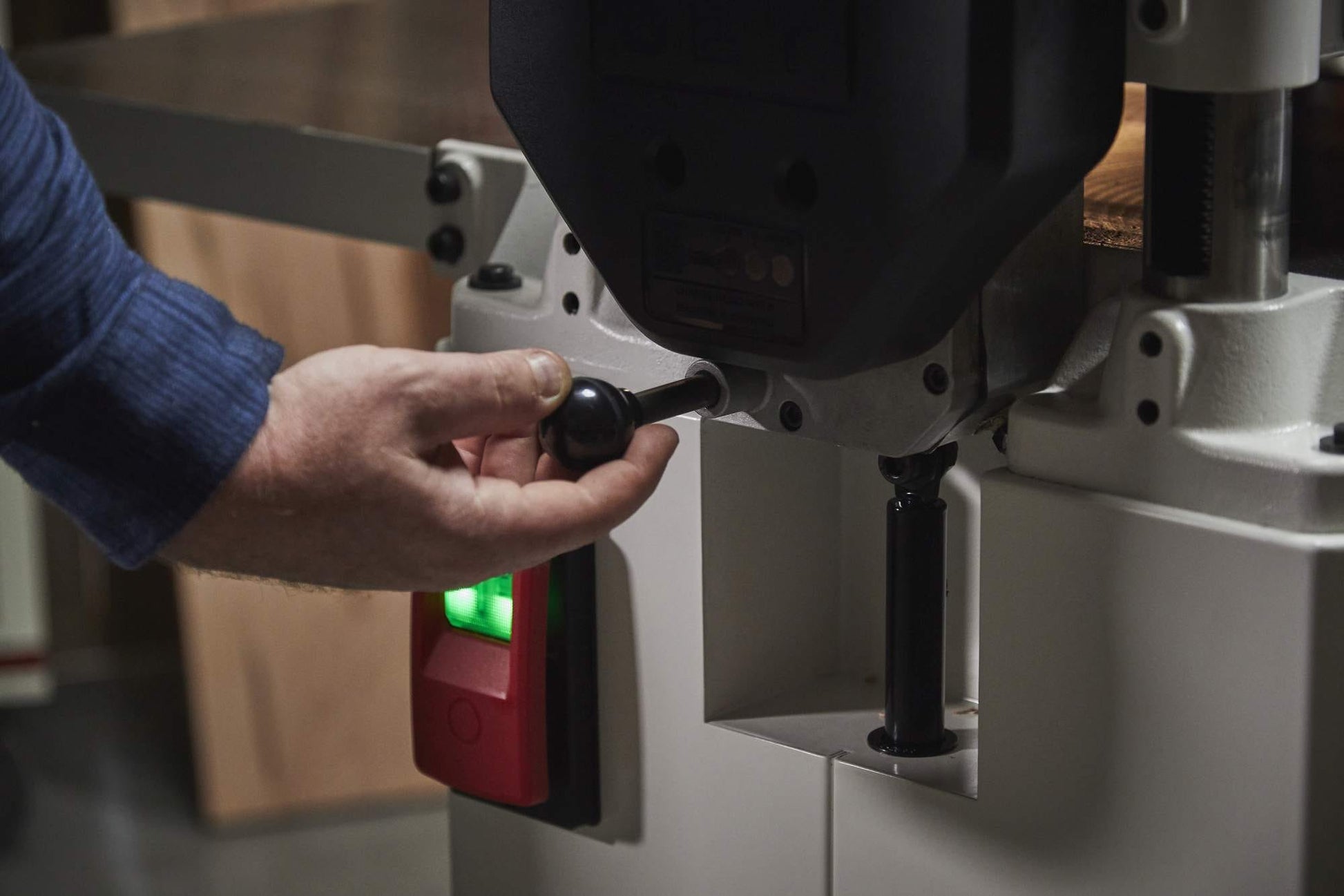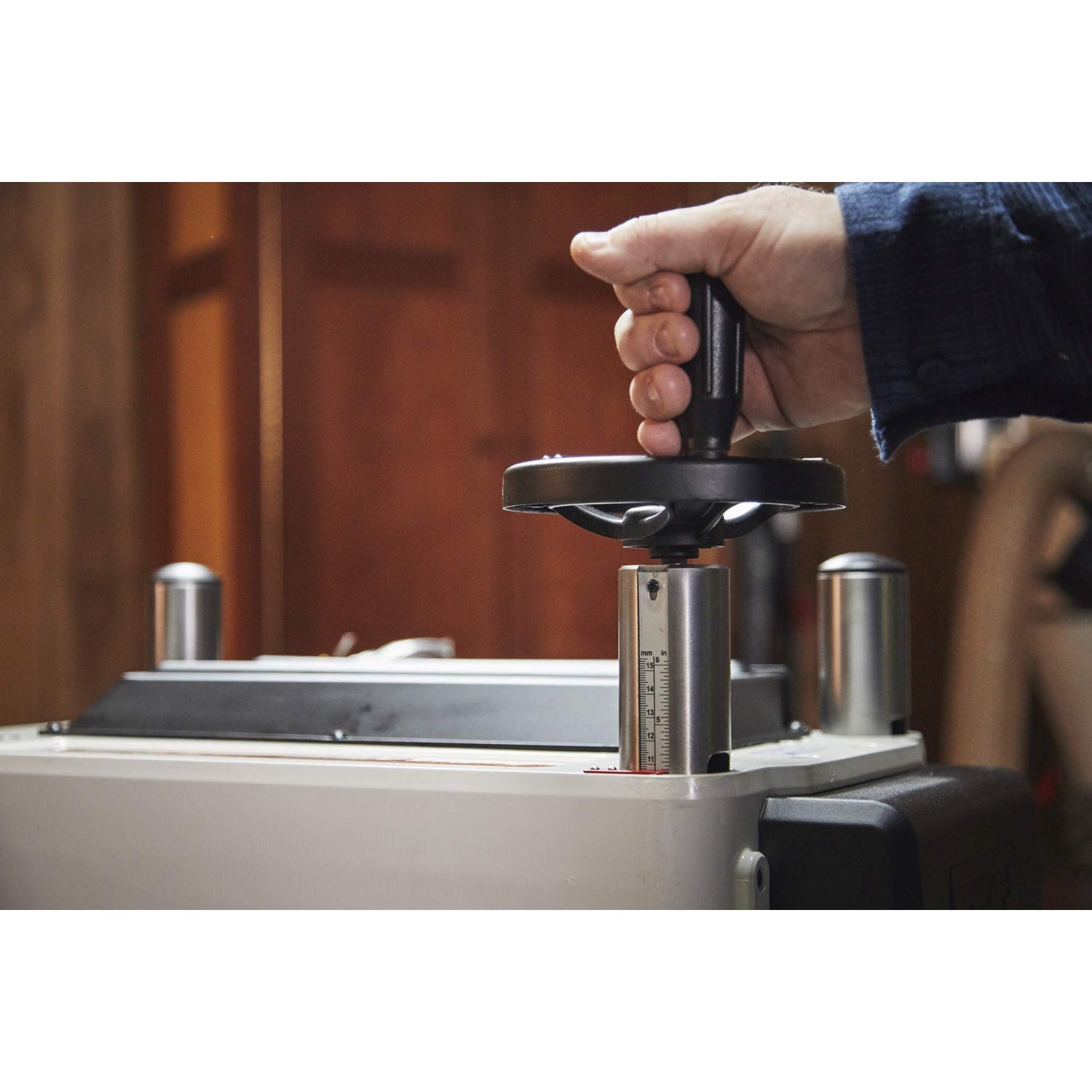 - Large hand wheel with positive gear drive easily moves the head to the desired board thickness