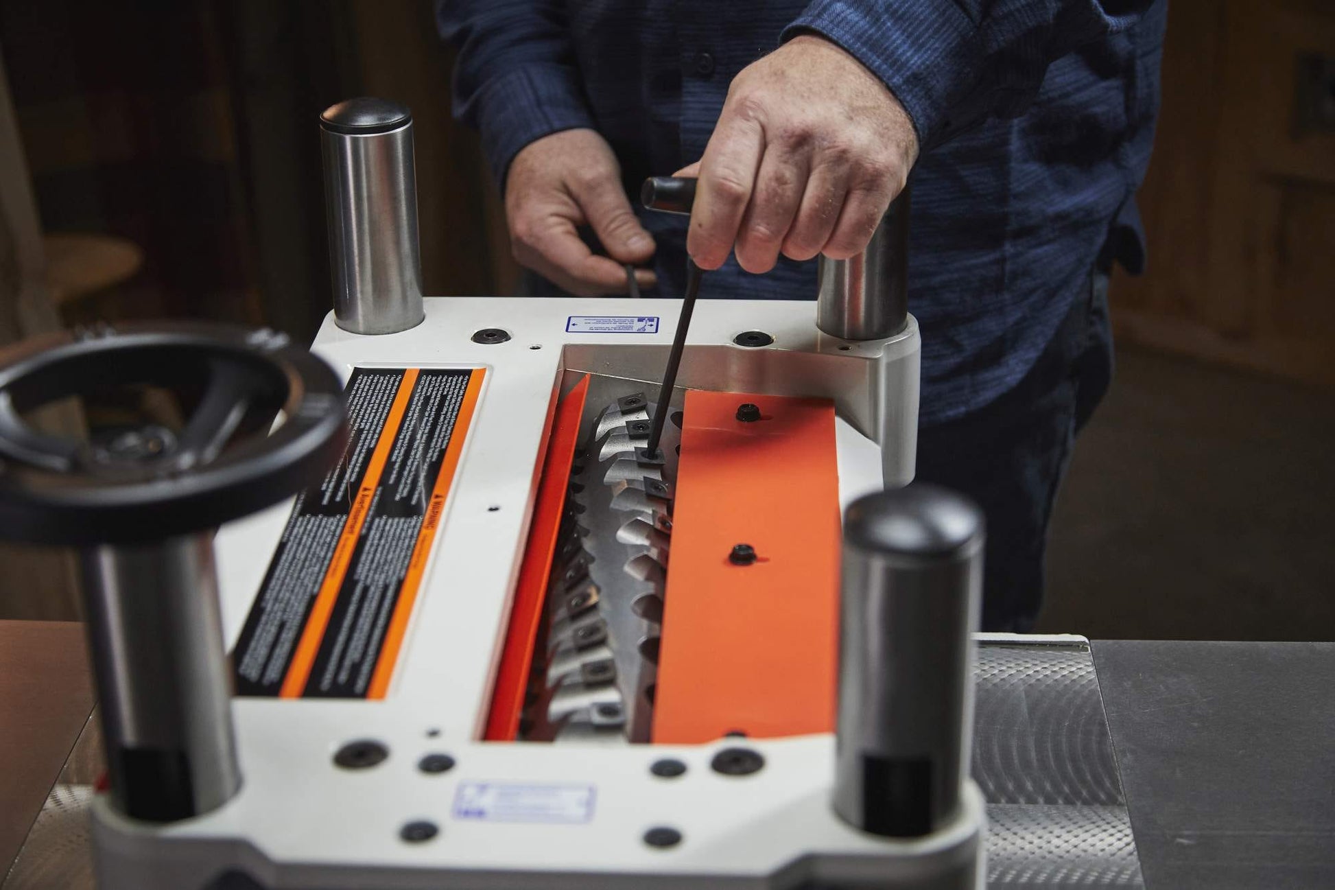 - Helical Cutterhead houses 48 staggered carbide knives that are engineered to align themselves without any adjustment for a superior finish and quieter cut