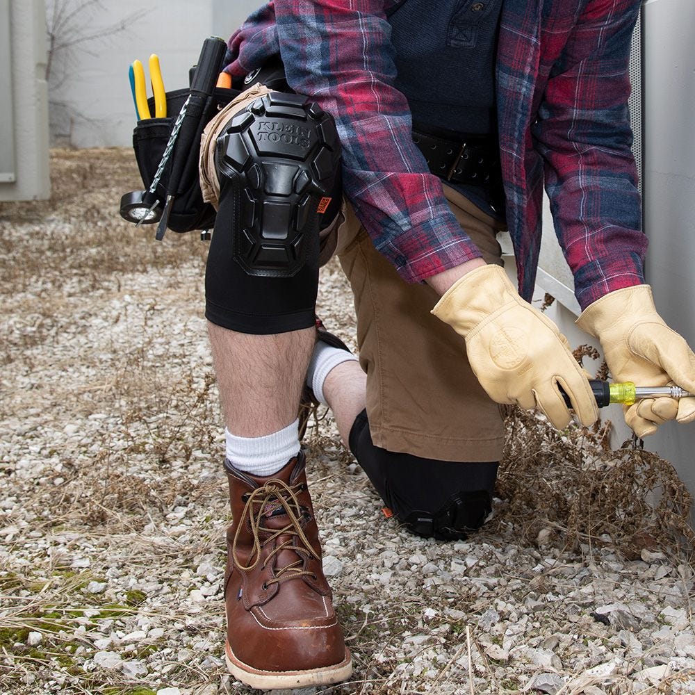 Heavy Duty Knee Pad Sleeves from Klein Tools provide triple layer protection and all day comfort. Unique, compact design keeps knee pads close to the body and centered for a second-skin fit, allowing agility for working in tight spaces. Stay cool and comfortable with the lightweight, breathable mesh back. Can be worn under or over pants. Perfect for the jobsite and weekend tasks.