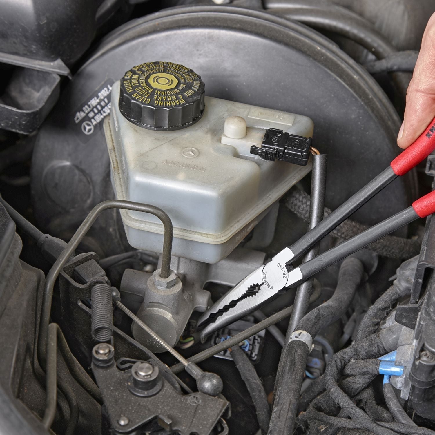 - KNIPEX automotive tool set are highly regarded for their exceptional quality, reliability, and versatility. Designed with precision and crafted using quality materials, KNIPEX tools deliver outstanding performance across a wide range of applications. Includes one (1) of each in a foam tool storage tray: Needle-Nose Combination Pliers, Extra Long Needle-Nose Pliers-Straight, Extra Long Needle-Nose Angled Pliers and High Leverage Diagonal Cutters