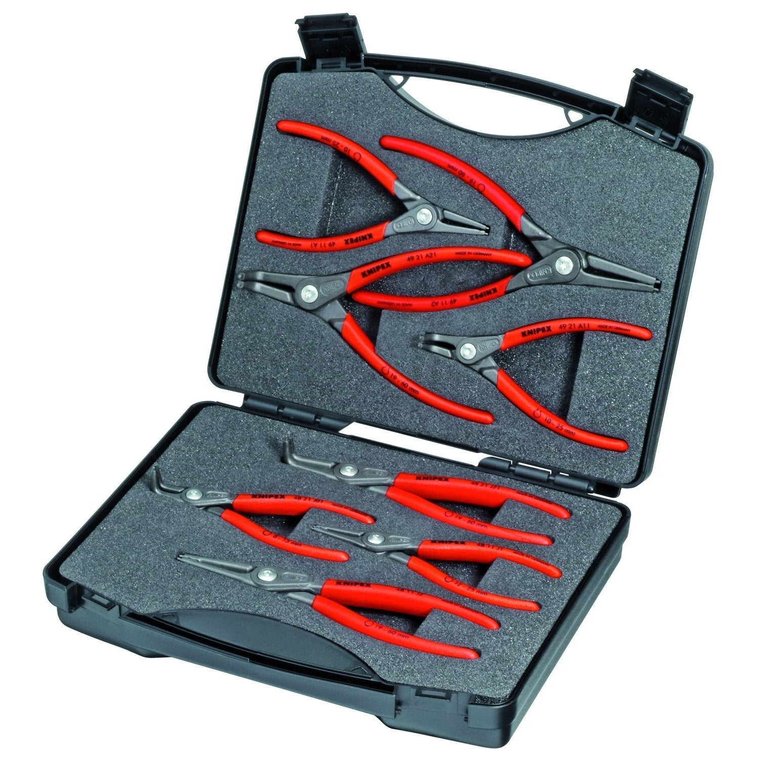 - The KNIPEX Precision Snap Ring Pliers Set is a specialized tools designed for precise and delicate work with snap rings or circlips. The set has both internal and external snap ring pliers, providing versatility for different tasks. These pliers feature slender, finely pointed tips that allow for precise engagement with snap rings in tight spaces. This set includes a tool case with foam insert with two (2) of each Internal Snap Ring Pliers and External Snap Ring Pliers and two (2) of each Internal Angled Snap Ring Pliers and External Angled Snap Ring Pliers
