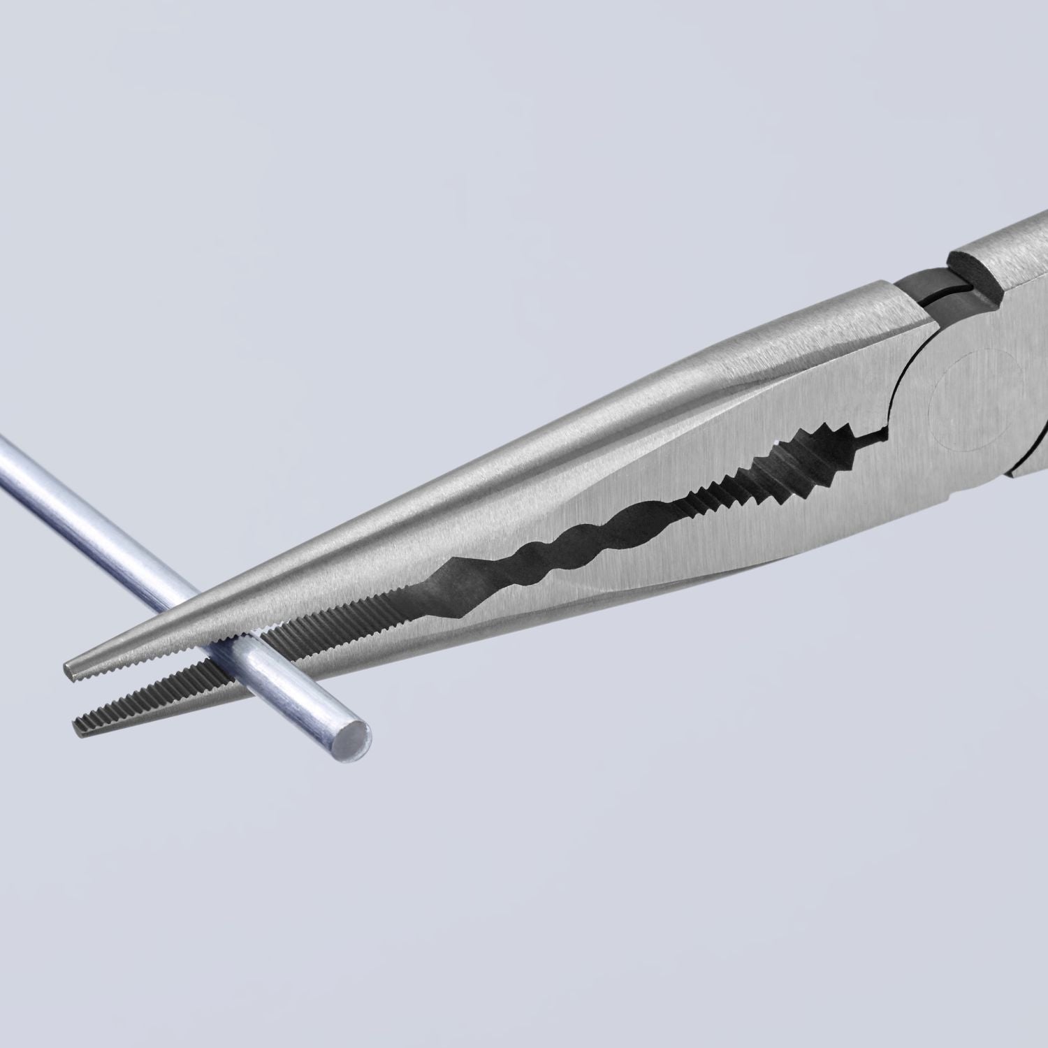 - Serrated gripping area for holding on to round parts near base of jaws