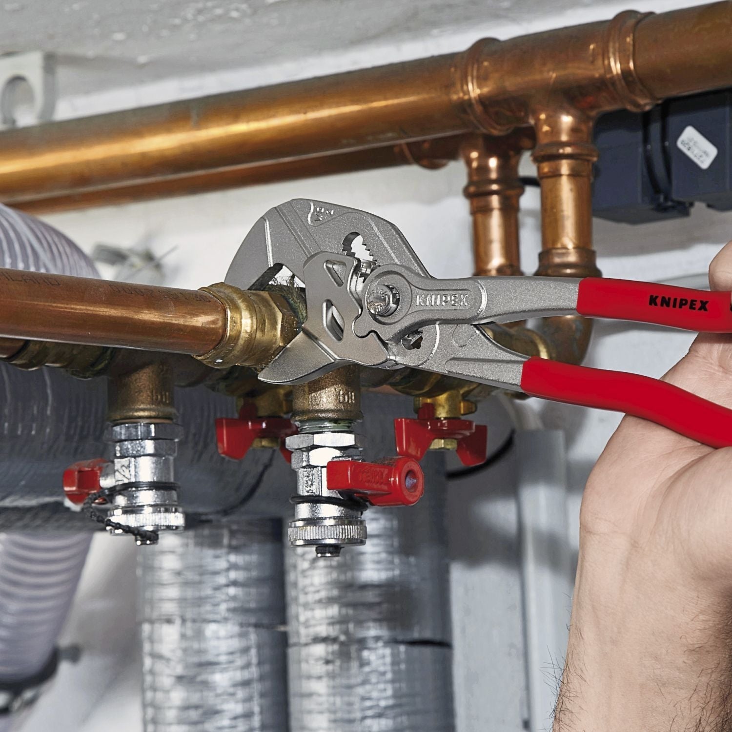 It's finally here. Introducing the new KNIPEX 12 in. Pliers Wrench, now offered in a chrome finish. It has all the features you know and depend upon of the original pliers wrench along with new improvements such as an increased jaw capacity, increased adjustment positions, a laser etched adjustment scale and a thinner jaw profile.