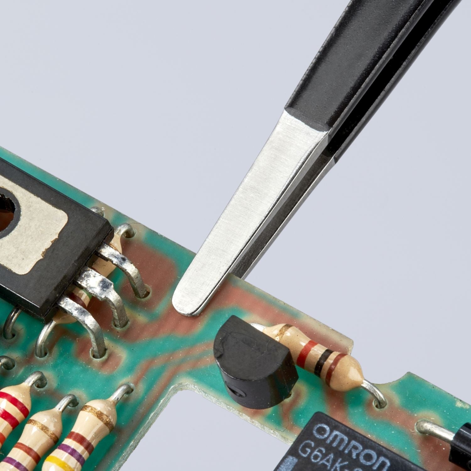 Knipex 92 58 74 ESD Stainless Steel Gripping Tweezers-Blunt Tips-ESD