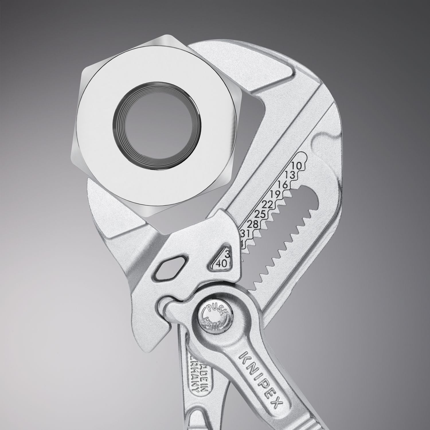 - Smooth jaws for damage free installation of plated fittings - working directly on chrome