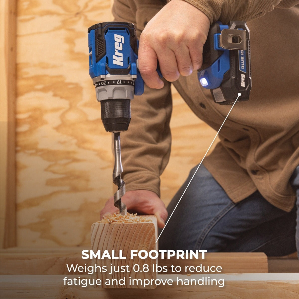 The included Blue Ion charger ensures safe, efficient power delivery and is compatible with all Kreg 20V Blue Ion batteries.