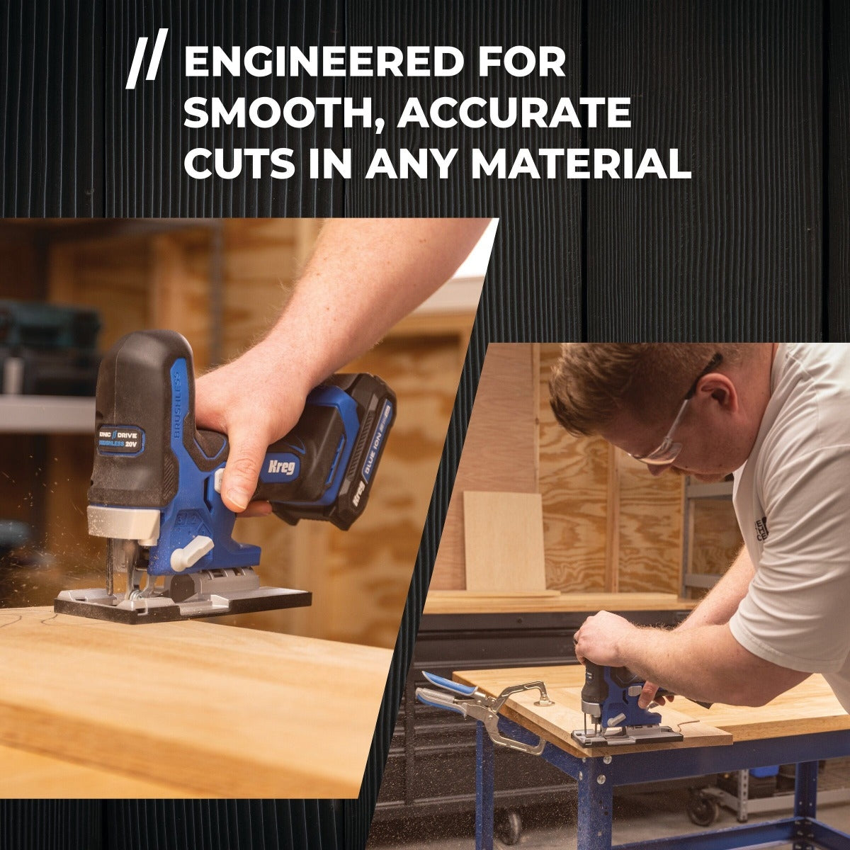 The Kreg 20V Ionic Drive Barrel Grip Jig Saw delivers precision, control, and adaptability in a compact, ergonomic design that puts you closer to the cut for unmatched accuracy.
