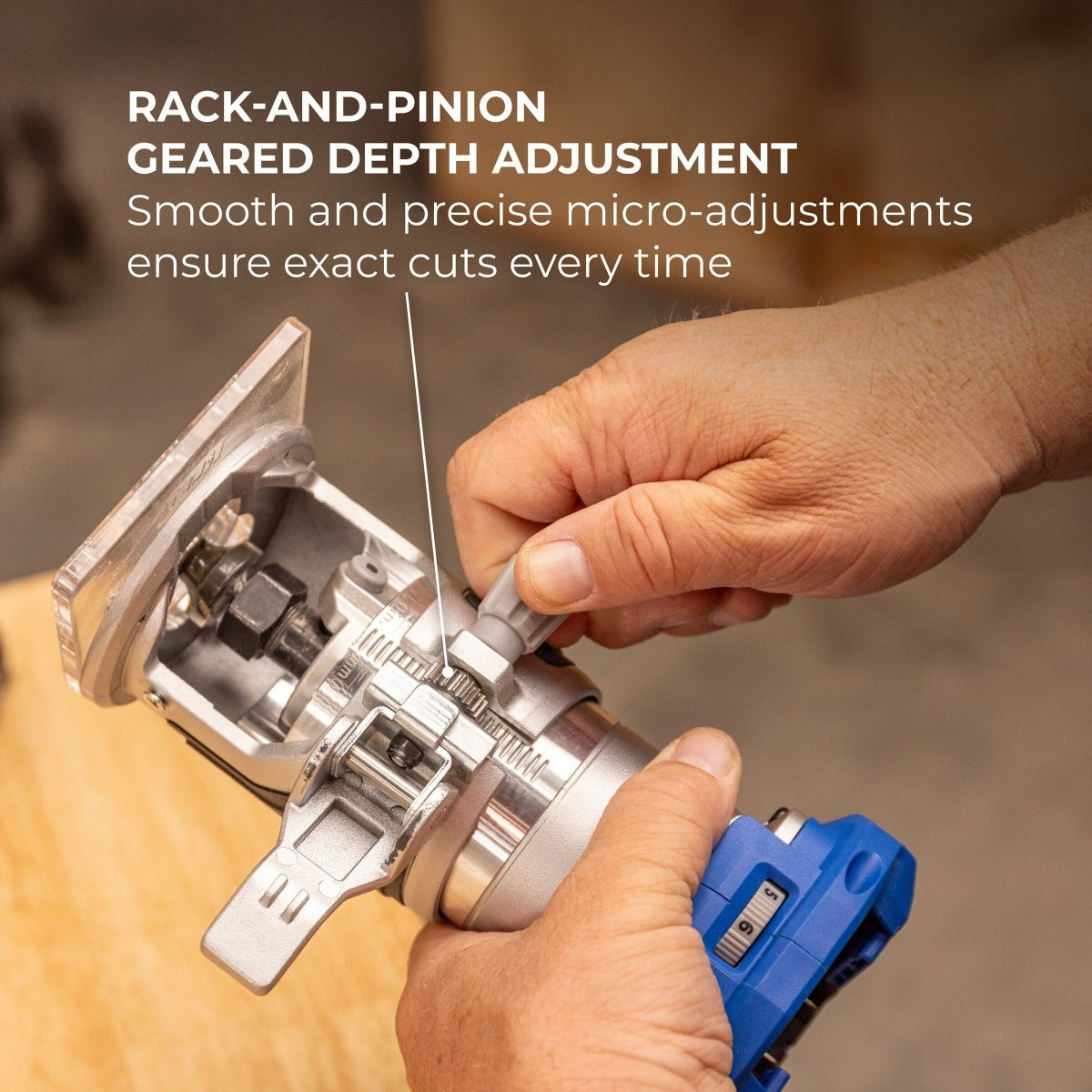 - Smooth rack-and-pinion depth adjusent for micro-precision