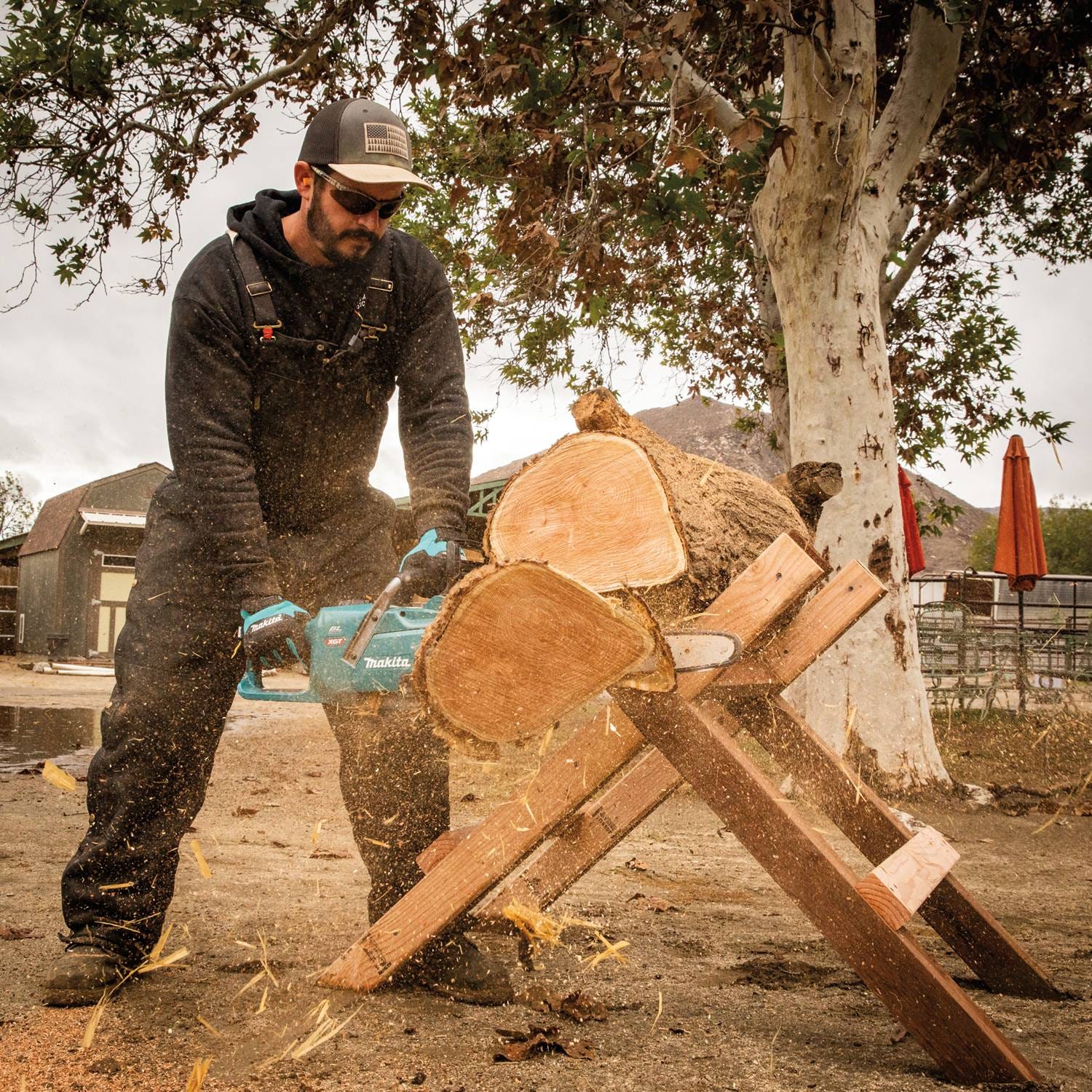 - Makita-built brushless motor delivers power of a 42cc gas chain saw