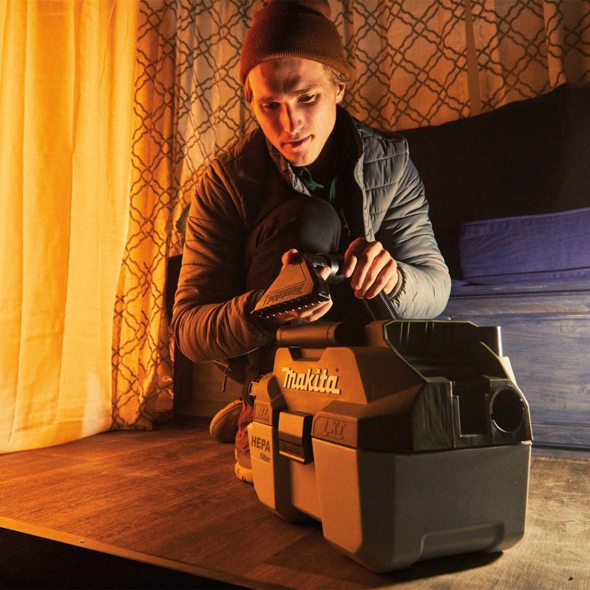Get outside with Outdoor Adventure, a new series of cordless products that operate within the LXT system. Outdoor Adventure Products feature advanced technology, delivering maximum performance and efficiency for the outdoors. Makita offers hundreds of products within the 18V LXT system so you can create your own adventure.Clean up dirt and liquids from your tent, car, canoe, and more with the Outdoor Adventure 18V LXT Brushless Wet/Dry Vacuum (ADCV11). The compact and cordless design with shoulder strap (sold separately) allows easy transport of the vacuum for efficient use. Get up to 60 minutes of continuous run-time and up to 57 CFM and 27" water lift of suction on a single charge of one 18V LXT 5.0Ah battery. For improved tool performance and extended battery life, Makita created Star Protection Computer Controls. Star Protection is a communication technology that allows the Star Protection-equipped tool and battery to exchange data in real time and monitor conditions during use to protect against overloading, over-discharging, and overheating. For increased versatility, the tool can also be powered by Makita LXT Lithium-Ion Batteries with the star symbol on the battery indicating Star Protection inside.It's part of Makita's expanding 18V Lithium-Ion System, the world's largest cordless tool system powered by 18V lithium-ion slide-style batteries. Makita 18V LXT Lithium-Ion Batteries have the fastest charge times in their categories, so they spend more time working and less time sitting on the charger.