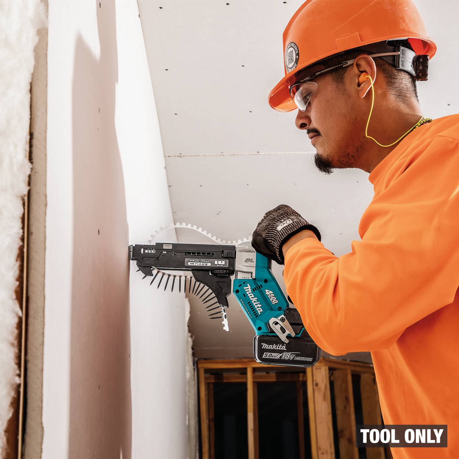 The 18V LXT® 4,500 RPM Autofeed Screwdriver (XRF04) delivers superior fastening speed (0-4,500 RPM) to handle a variety of drywall, decking and framing applications.