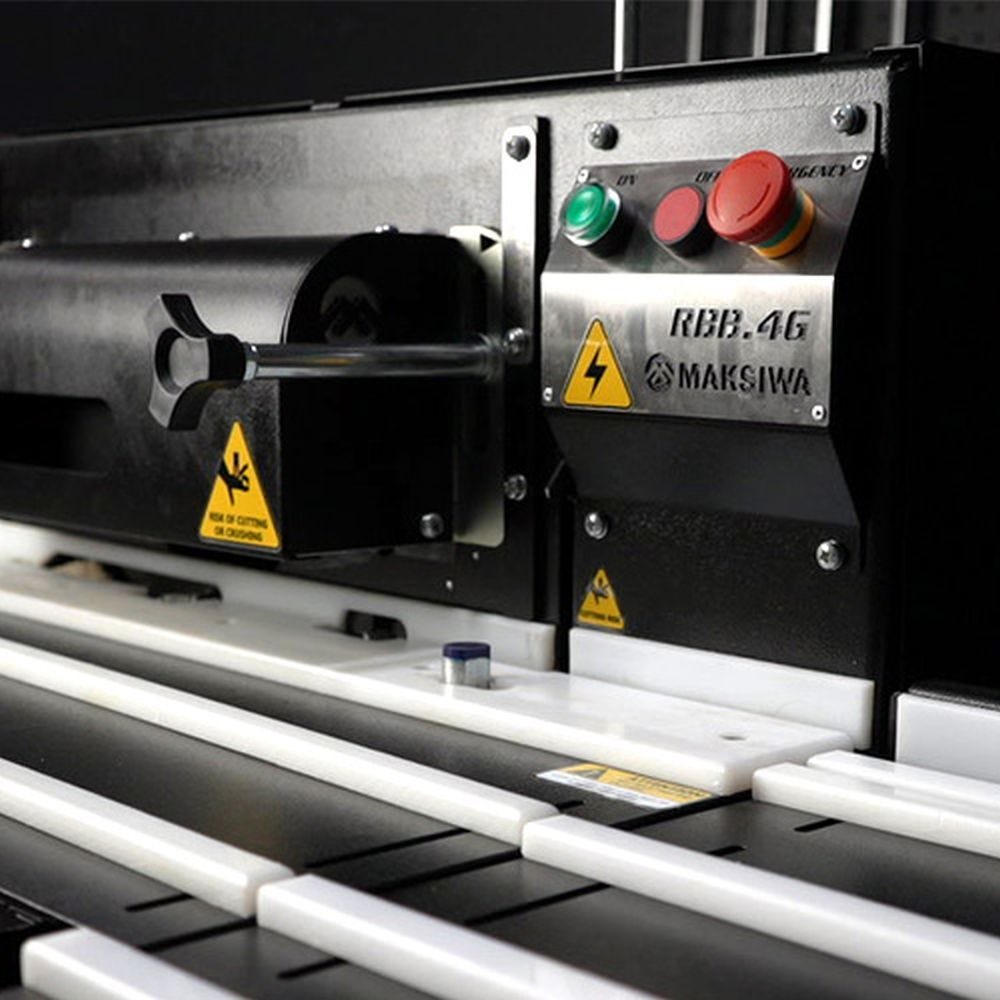 The RBB.4G has 4 groups that perform trimming, scraping and polishing of edge bands applied to MDF sheets and similar, providing a perfect finish to your projects. Performs these operations on edge bands with a thickness of up to 1 mm, and sheets with a height of up to 70 mm. It has an advance that will help and guarantee greater ergonomics during operations. Its adjustment and operation is very simple: First, you choose the plate you want to finish. After that, adjust the machine according to the height of the plate. Now, all you have to do is turn on the machine and carry out the deburring flush with the piece.Introducing the RBB 4G—the next level of accuracy and efficiency in edge banding technology that combines outstanding performance with innovative features. With this new machine, your woodworking experience reaches new heights.Crafted with meticulous attention to detail, the RBB 4G takes everything you loved about its predecessor, the RBV-1000, and amplifies it to perfection.One of the standout features of this woodworking powerhouse is its ability to handle large panels effortlessly—up to 138 inches. Whether you're working with wide boards or oversized projects, it provides the stability and precision needed to tackle any size of work.No matter the project, this equipment delivers outstanding performance across a wide range of materials—from laminates, wood veneers, and plastics up to 1 millimeter in thickness.Speed matters when it comes to productivity. That is why this machine is equipped with a powerful 3-horsepower motor.The RBB 4G is designed to keep your workspace clean and dust-free. With its built-in 4-inch dust extractor port, you can easily connect any dust collection system to ensure efficient debris removal and maintain a pristine working environment.This machine is highly versatile. Fine-tune it to your needs with an accommodating height adjustment mechanism. It allows you to run panels up to 2 ¾ inches high and includes a fine adjustment scraping system that achieves an excellent finish.Its ergonomic design ensures maximum user comfort, reducing fatigue and enabling you to focus on your woodworking. The user-friendly controls put all the power at your fingertips, making operation a breeze.Unlock the full potential of the RBB 4G by pairing it with the CDCMR. This winning combination offers unparalleled efficiency and control, enabling you to take your woodworking to the next level.At Maksiwa, we stand behind our products, offering a certified two-year warranty on our machines, free video call support, and excellent U.S.-based technical service.For more information about our machines, contact one of our sales representatives. Discover unmatched performance and efficiency today.Maksiwa—helping woodworkers realize their dreams for over 40 years.