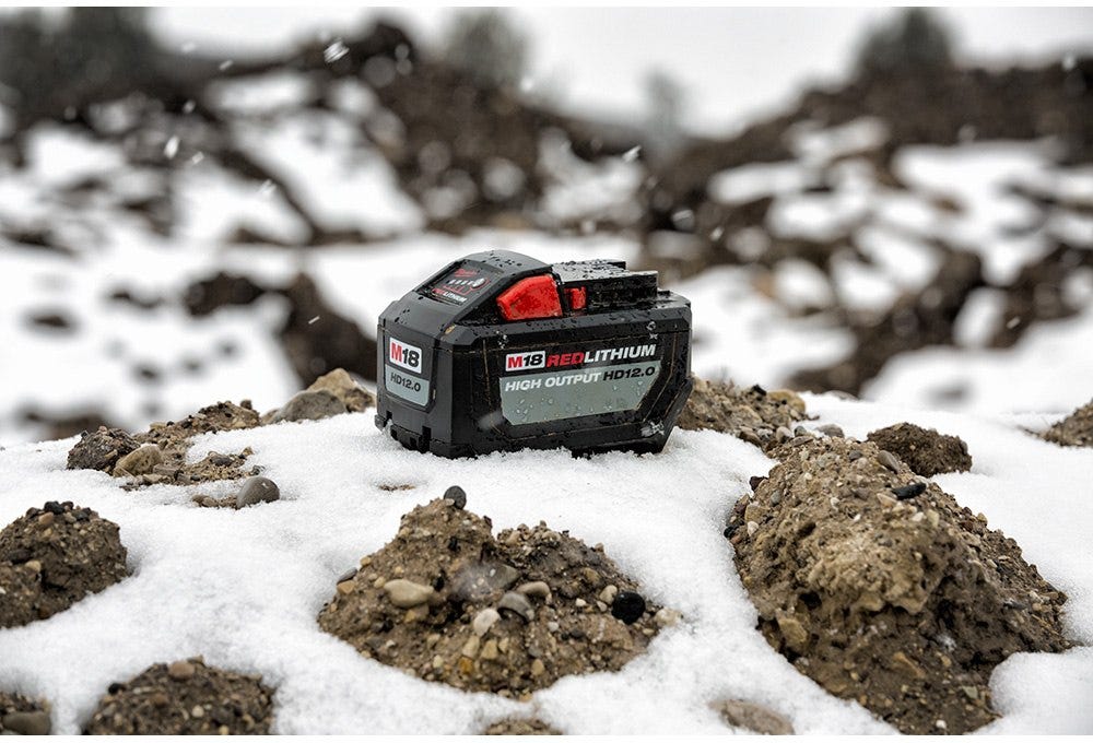 The M18 REDLITHIUM HIGH OUTPUT HD12.0 Battery Pack provides 50% more power and runs 50% cooler vs M18 REDLITHIUM HD battery packs. The massive increase in power elevates the performance of the entire M18 system and drives the next breakthrough in M18 FUEL, delivering the power of 15A corded product. It delivers fade free power and runs substantially cooler through heavy applications, allowing tradesmen to push their cordless tools harder and longer than ever before.The M18 REDLITHIUM HIGH OUTPUT HD12.0 is the best performing cold weather pack ever made, providing increased power in extreme cold weather conditions (below 0F / -18C). It provides the most work per charge of any professional power tool battery in the industry, driving full corded replacement on the jobsite. The REDLITHIUM HIGH OUTPUT HD12.0 battery is fully compatible with 150+ M18 solutions.