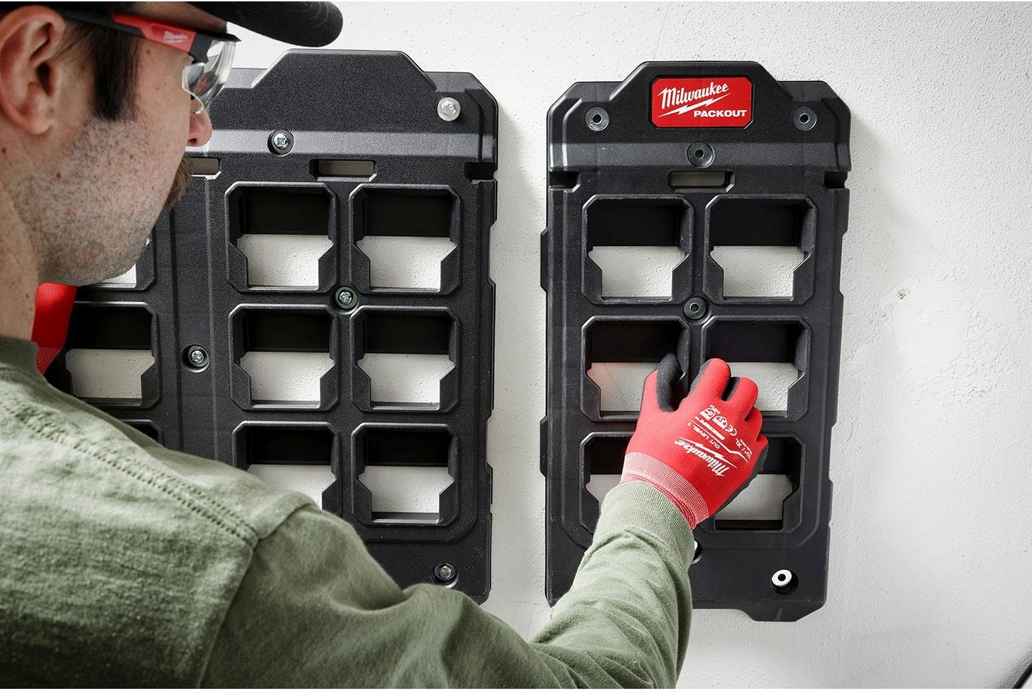 The MILWAUKEE PACKOUT Compact Wall Plate features Quick-Alignment Tabs to make installing rows and columns of multiple wall plates easier. This Compact Wall Plate is constructed with Metal Reinforced Mounting Points and impact-resistant polymers that ensure secure mounting in shop, transit, and site environments. The Compact Wall Plate has a 50lbs weight capacity when mounted in the shop, and a 25lbs when mounted in vehicles. As part of the MILWAUKEE PACKOUT Modular Storage System, the PACKOUT Compact Wall Plate allows you to customize your storage system and keep your storage solutions organized. MILWAUKEE PACKOUT is the industry's most versatile and durable modular storage system.