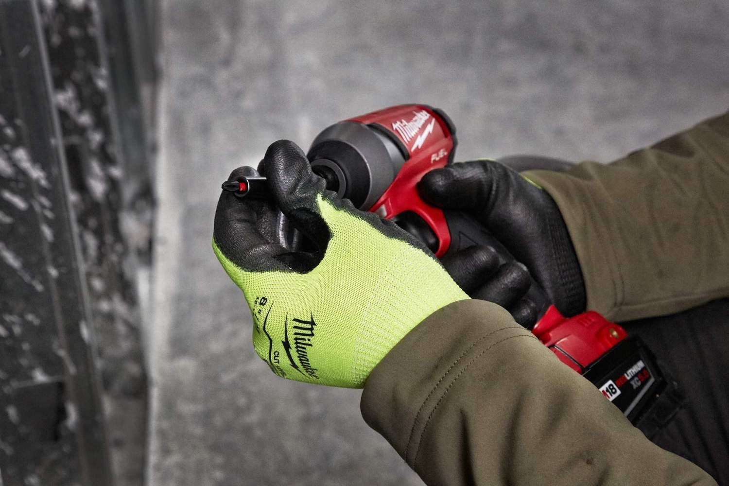 The MILWAUKEE Small High-Visibility Cut Level 2 Polyurethane Dipped Gloves are designed to provide a Better Fit and Better Protection. These hi-vis cut resistant gloves have a reinforced nitrile coating between the thumb and index finger for enhanced durability in high wear points. The cut resistant gloves feature SMARTSWIPE touchscreen compatible fingertips. The cut level 2 gloves are knit with 15 gauge for better dexterity when handling small objects. These breathable gloves are lightweight for comfortable all day wear. Milwaukee offers hi-vis gloves for the best fit for every user. Milwaukee High Visibility Gloves feature color ID bands for easy identification of cut levels.