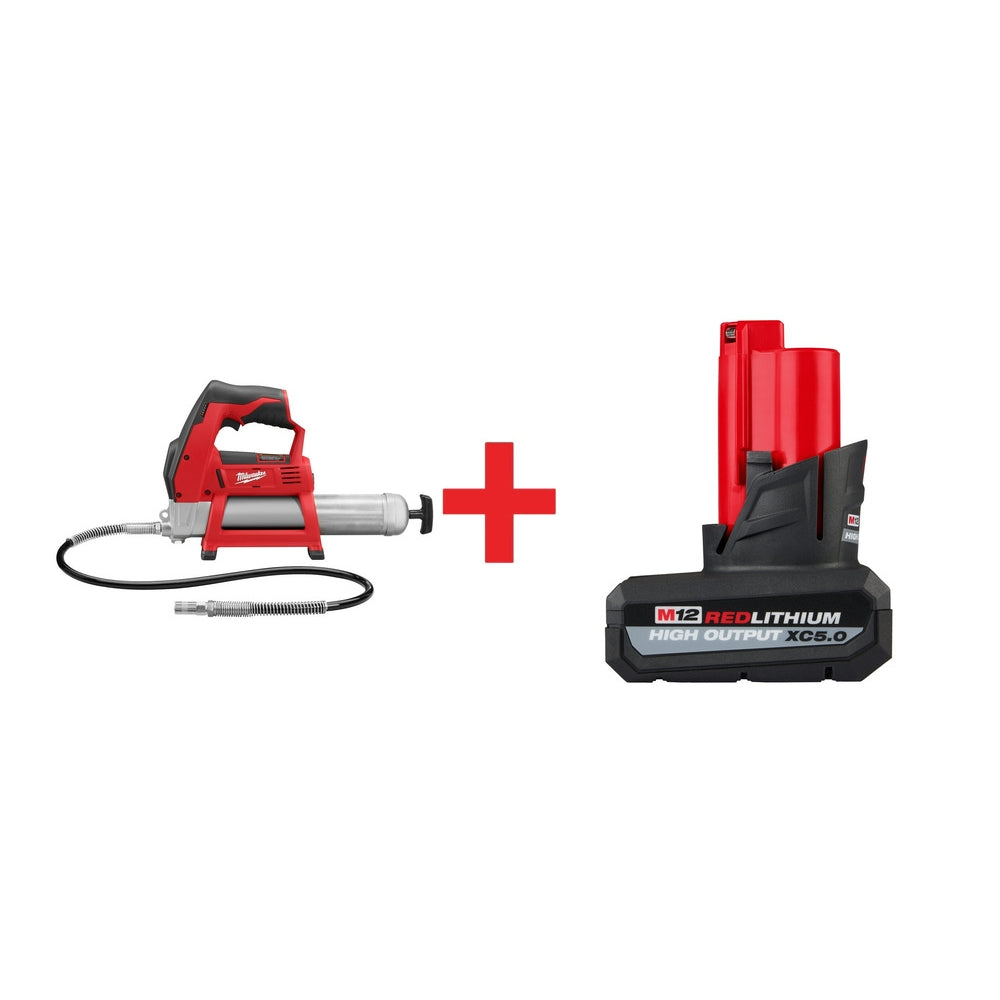 Milwaukee M12 Grease Gun with XC 5.0Ah Battery Pack