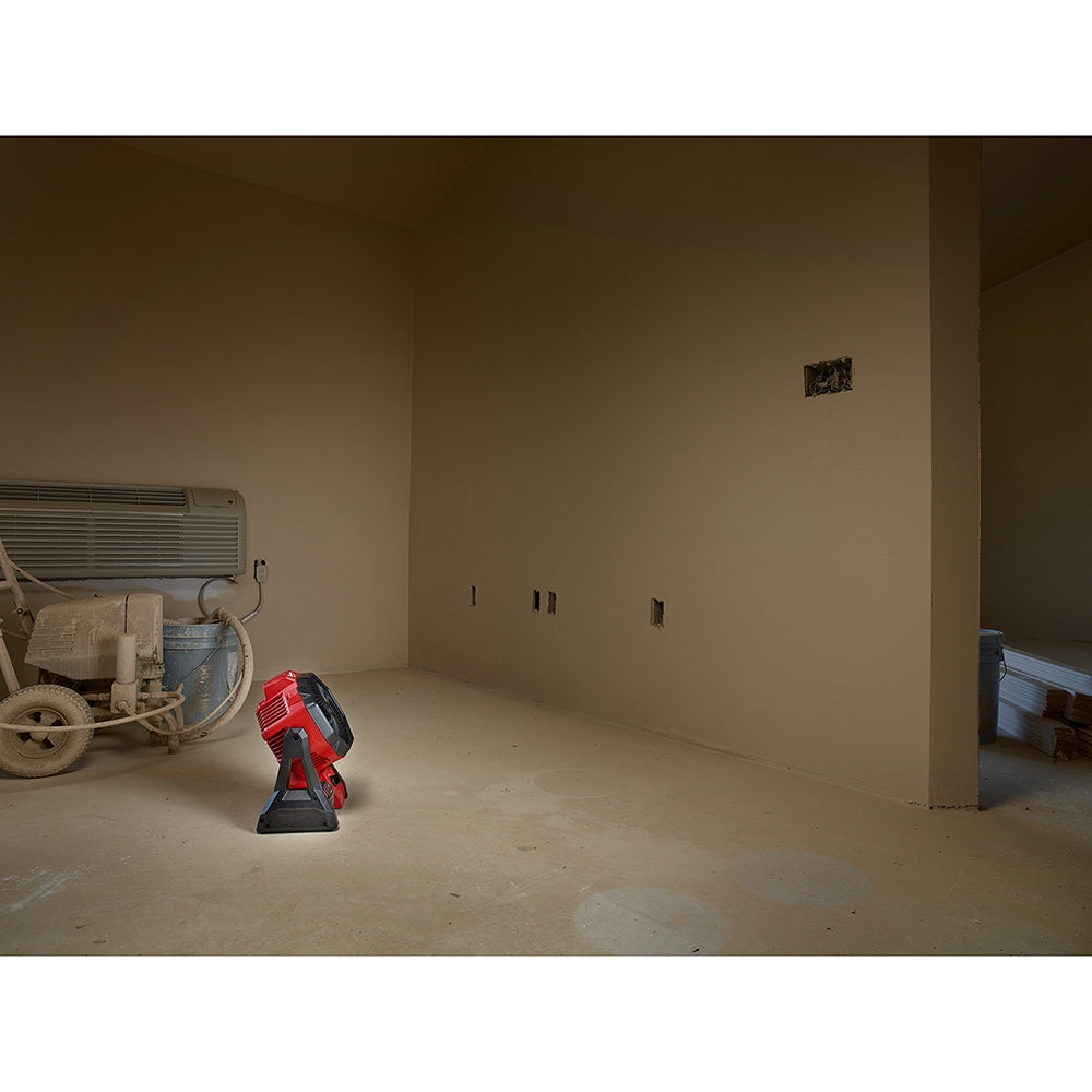 The M18™ Jobsite Fan provides the most powerful airflow, and unmatched run-time in a compact size. The 0886-20 can circulate air over 40 feet, making it ideal for drying or cooling on a variety of jobsites. Powered by the M18™ REDLITHIUM™ battery the Jobsite Fan delivers up to 17 hours of run-time on low* for all day run-time on a single battery charge. This jobsite fan features a 120° adjustable head, 9 stopping positions and 3 speed settings which provide optimal airflow control. The 0886-20 also includes an AC adaptor for extended run-time. *17 hours with a M18 REDLITHIUM XC 5.0 battery (batteries and charger sold separately).