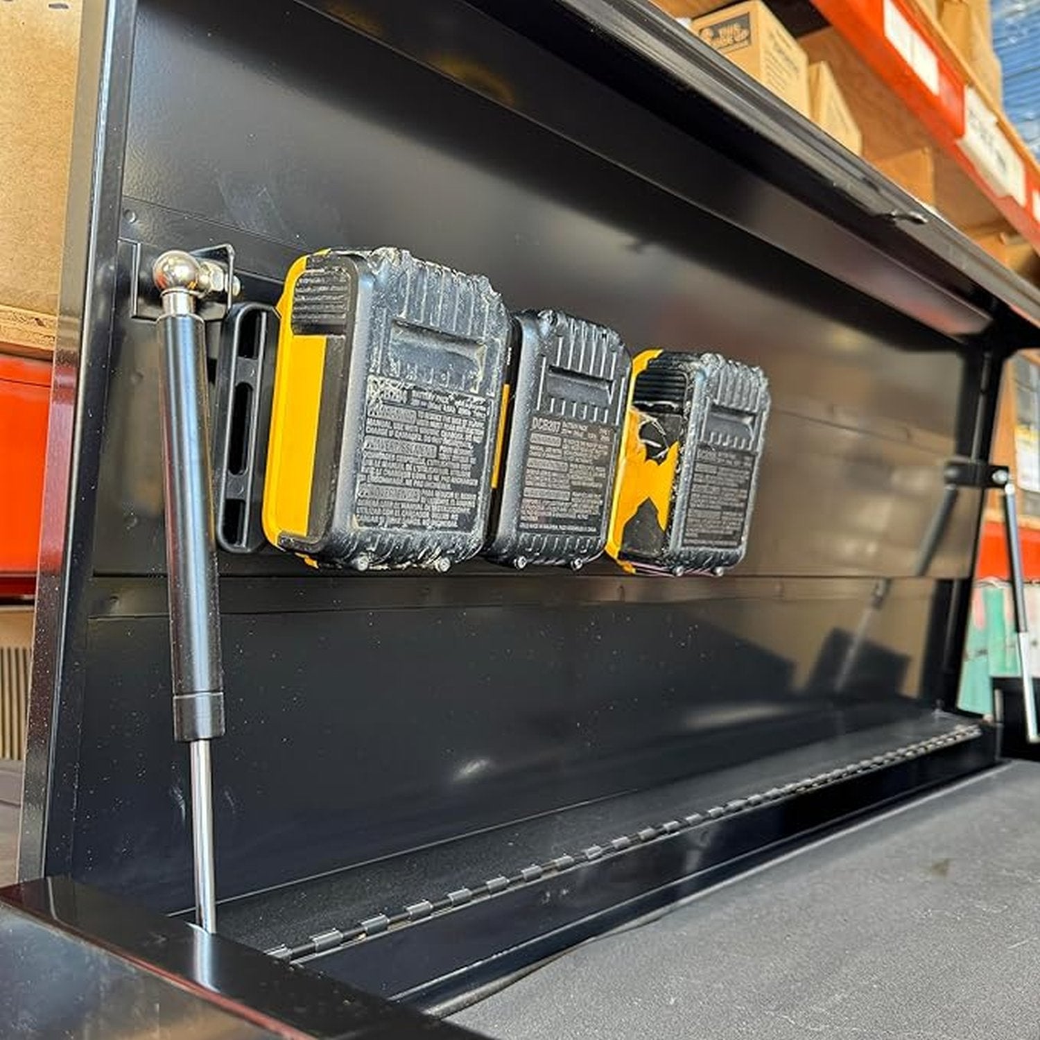 StealthMounts Battery Boards, compatible with DeWalt 20/60V batteries, can securely store up to three at a time. Featuring soft-touch rubber coated magnets on the back, they mount firmly to any metal surface while preventing scratches and wear. Batteries can be loaded from either direction and stay locked in place even when being transported. Perfect for use in Tool Boxes, Cabinets, Shelving and much more, these boards give you reliable and versatile storage wherever you need it.