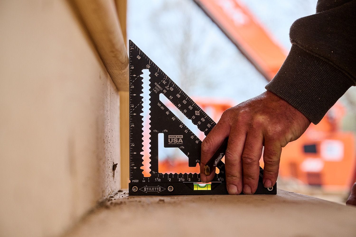 The STILETTO 7" Carpenter Square is designed with more layout notches to help you build faster. Additional notches aid in laying out 2'x6' material, ripping boards, and marking rafter pitches. The BOMBER Cutout allows for repeatable stud measurements, while the bottom heel markings provide marking versatility. The 7" Carpenter Square with Level is fully machined, with an anti-glare finish and the most durable coating.