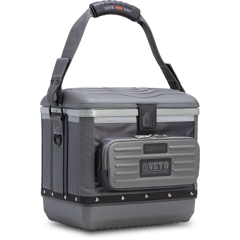 Veto's lunchbox-sized cooler safely keeps the critical items that power your day. The hybrid design melds the functional appearance of a soft-sided lunchbag with the performance of a hard-sided cooler. Secured via magnetic latch, the zipperless lid can be easily opened with one hand when on the road. The LBC-10 offers significant internal volume insulated by 1" (2.5cm) of rigid, expanded polypropylene foam. The injection molded polypropylene plastic liner is easily removed for rinsing out spilled liquids. An included interior tray keeps small items and cutlery separate and accessible, can be slid left or right, or can be removed to accommodate larger meal items. The bag exterior features a zippered front pocket for storing everyday carry needs. Additional features include an over-molded elastomeric/polypropylene waterproof LC base and a reflective band around the perimeter. Note: Ice Pack not included.