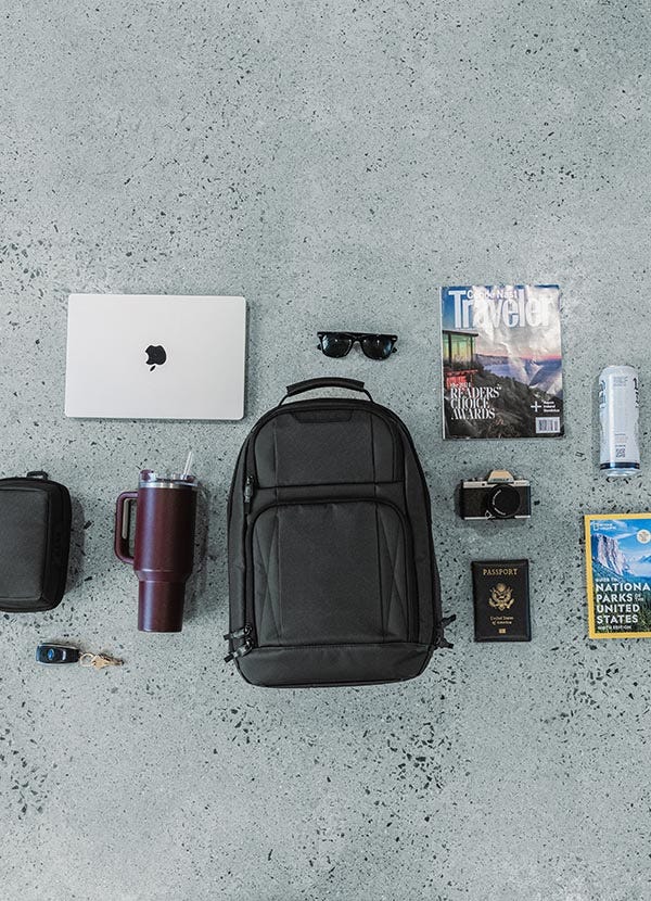 - Durable and impact resistant thermoformed, padded top front compartment features a 2-in-1 pocket with a magnetic divider and an anti-scratch pocket for glasses