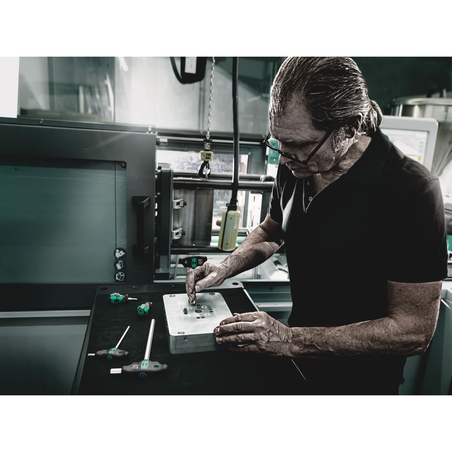Handle: T-shape, 2 components, with hole for hanging. With Take it easy tool finder: Colour coding by profiles (blue = hexagon socket) and size stamping.